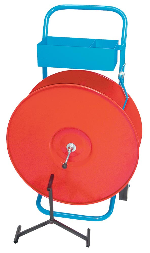 Abroll-Wagen, fahrbar, rot lackiert, für PP + PET Kunststoffbänder, Rollen 200, 280, 406 mm Kern