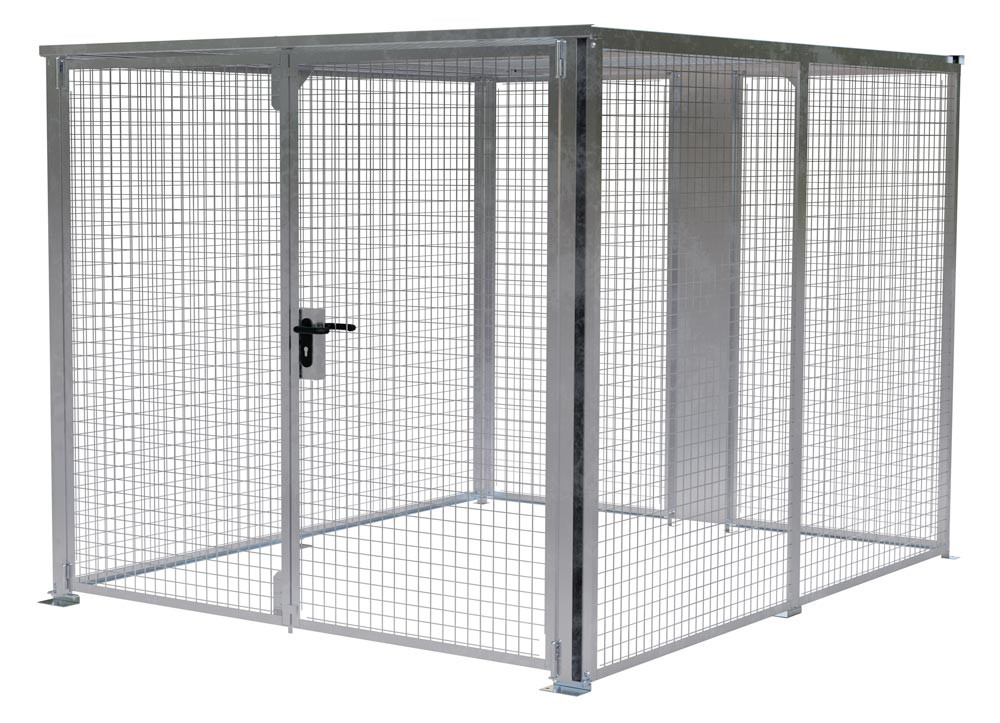 · Zur Aufbewahrung von Gütern unter Verschluss · Stabile Rahmenkonstruktion · Wände, Türen und Dach aus feuerverzinktem Drahtgitter 50 x 50 x 4,8 mm · Abschließbares Doppelflügeltor mit Drücker und Zylinderschloss, B x H 2160 x 1985 mm · Vorbereitet für Bodenbefestigung · Baukastensystem mit Aufbauanleitung zur Selbstmontage