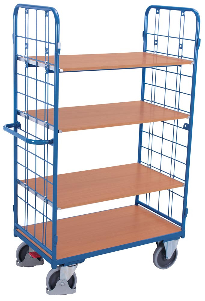 Etagenwagen, 2 Gitterwände, 4 Ladeflächen LxB 1000x700 mm, Außenmaße LxBxH 1185x720x1820 mm, Traglast 500 kg