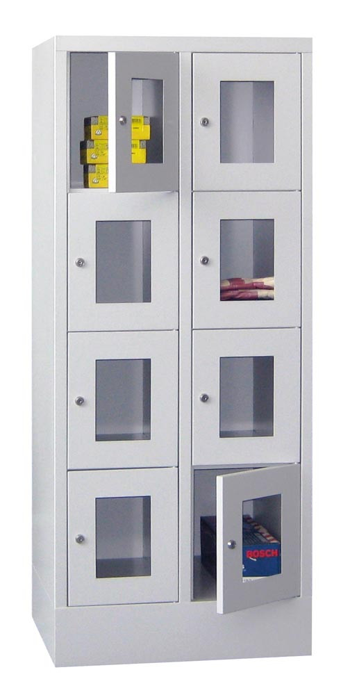 Fächerschränke mit Sichtfenstertüren, 2x4 Fächer, Schloss, BxTxH 600x500x1518 mm, Abt. B 300 mm, RAL 7035 EP556845