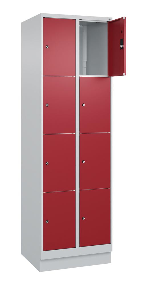 Fächerschrank, BxTxH 600x500x1950 mm, 2x4 Fächer, Abt.B 300 mm, Sockel, Schloss, glatte Türen, Farbwahl