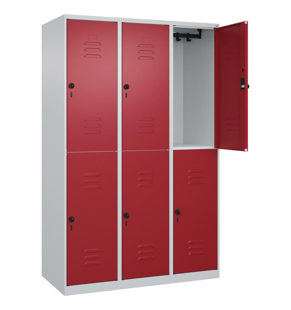 Fächerschrank, doppelstöckig, BxTxH 1200x500x1850 mm, 3x2 Fächer, Abt.B 400 mm, Drehriegel, bodenstehend, Farbwahl