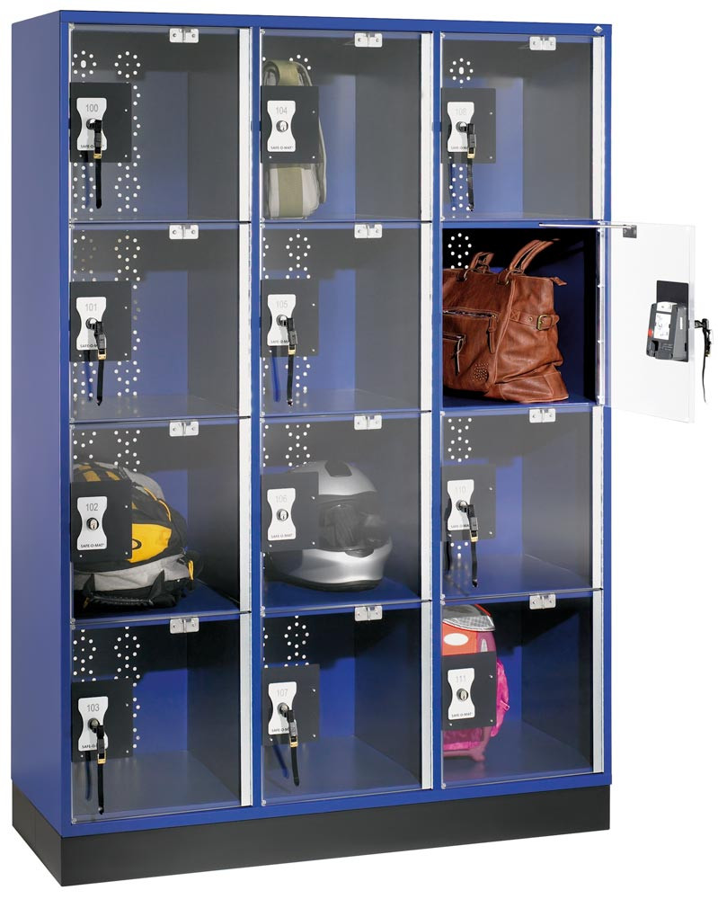 Fächerschrank mit Acrylglastüren, 3x4 Fächer 380 mm, BxTxH 1220x500x1750 mm, Schloss, RAL 7021 EP535296