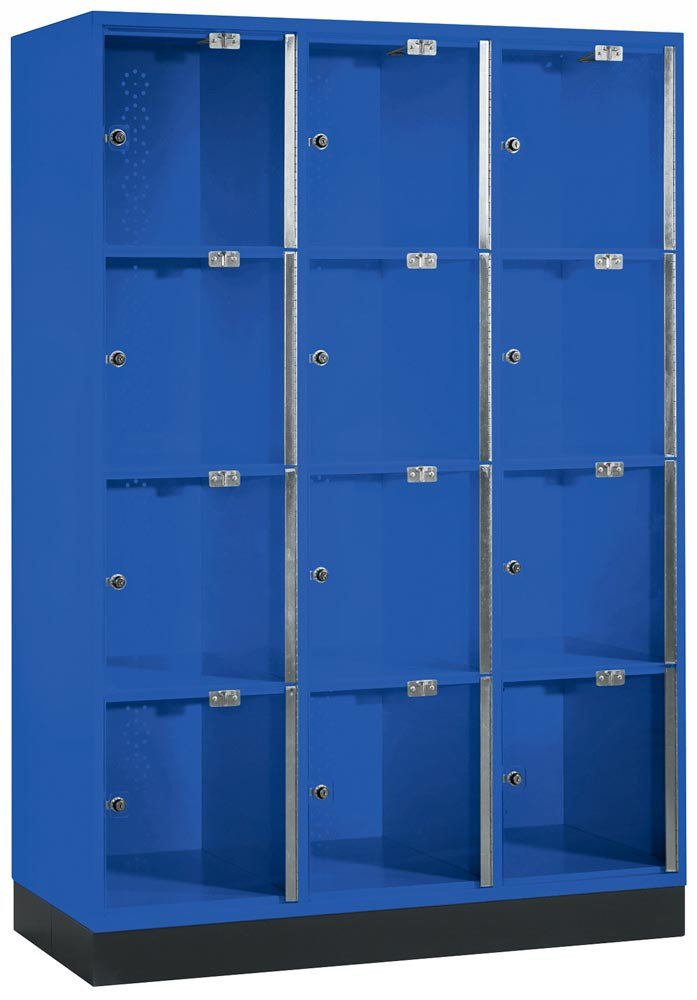 Fächerschrank mit Acrylglastüren, 3x4 Fächer 380 mm, BxTxH 1220x500x1750 mm, Schloss, RAL 5012