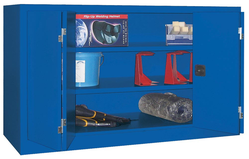 Falttürenschrank, Vollblechtüren, 2 verzinkte Böden, BxTxH 1200x400x1000 mm, RAL 7035/5010 EP528637