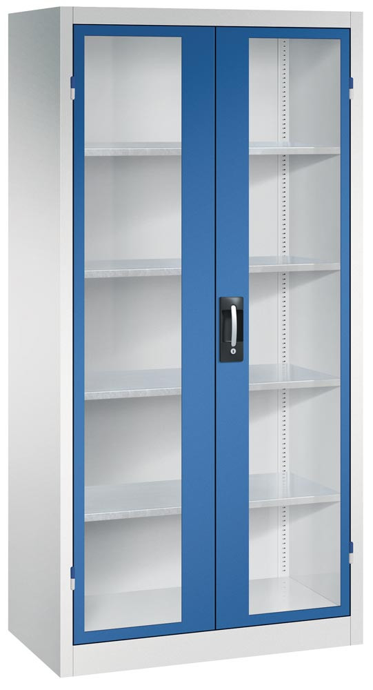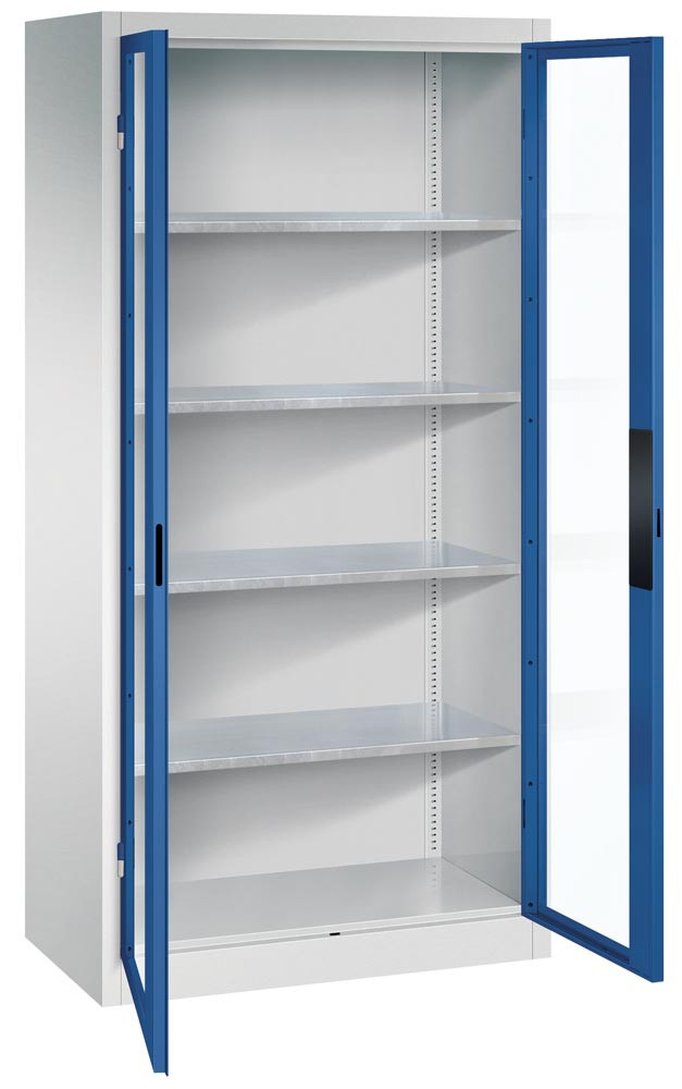 Großraum-Werkzeugschrank mit Sichtfenstertüren, 4 Verstellböden, BxTxH 930x600x1950 mm, RAL 7035/5010 EP533481