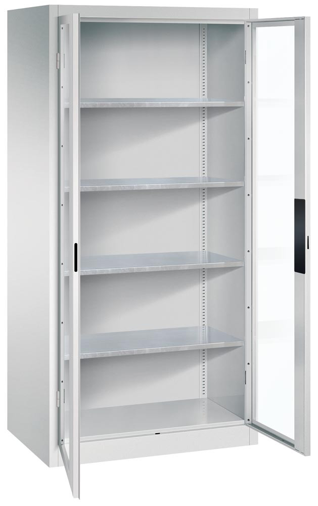 Großraum-Werkzeugschrank mit Sichtfenstertüren, 4 Verstellböden, BxTxH 930x500x1950 mm, RAL 7035 EP533478