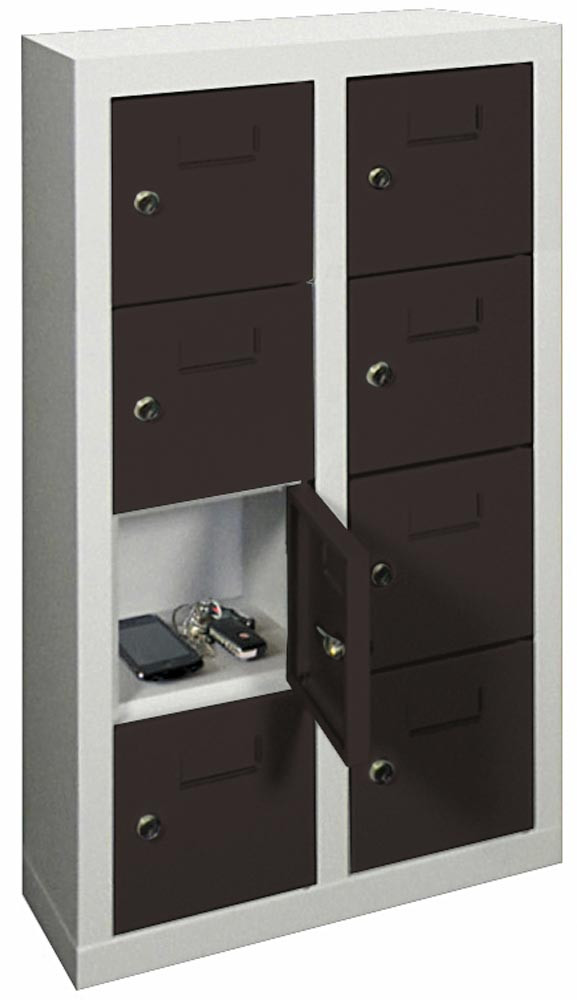 Kleinfachschrank, Wandbefestigung, BxTxH 460x200x815 mm, 2x4 Fächer, Fachbreite 145 mm, Schloss, RAL 7035/7016 lichtgrau/anthrazit
