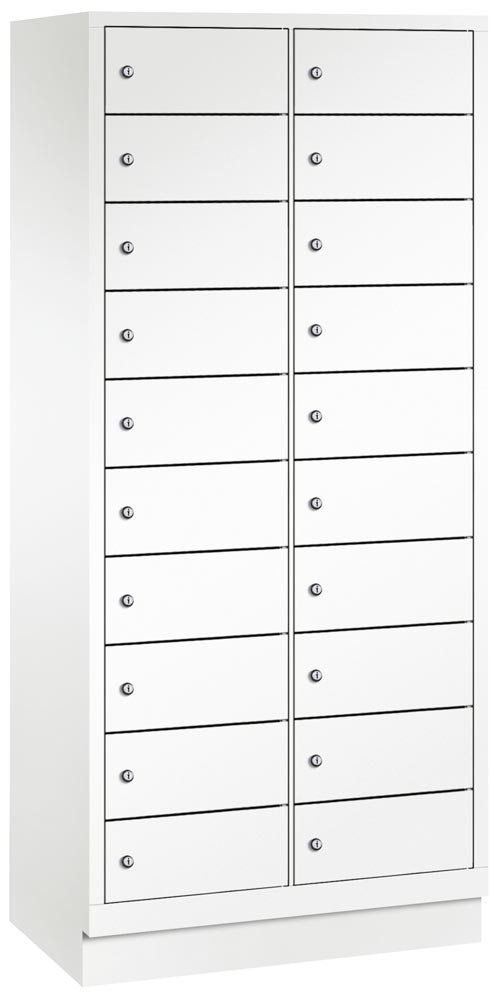 Laptopschrank, BxTxH 810x500x1800 mm, 20 Fächer, mit Sockel, RAL 9016 verkehrsweiß
