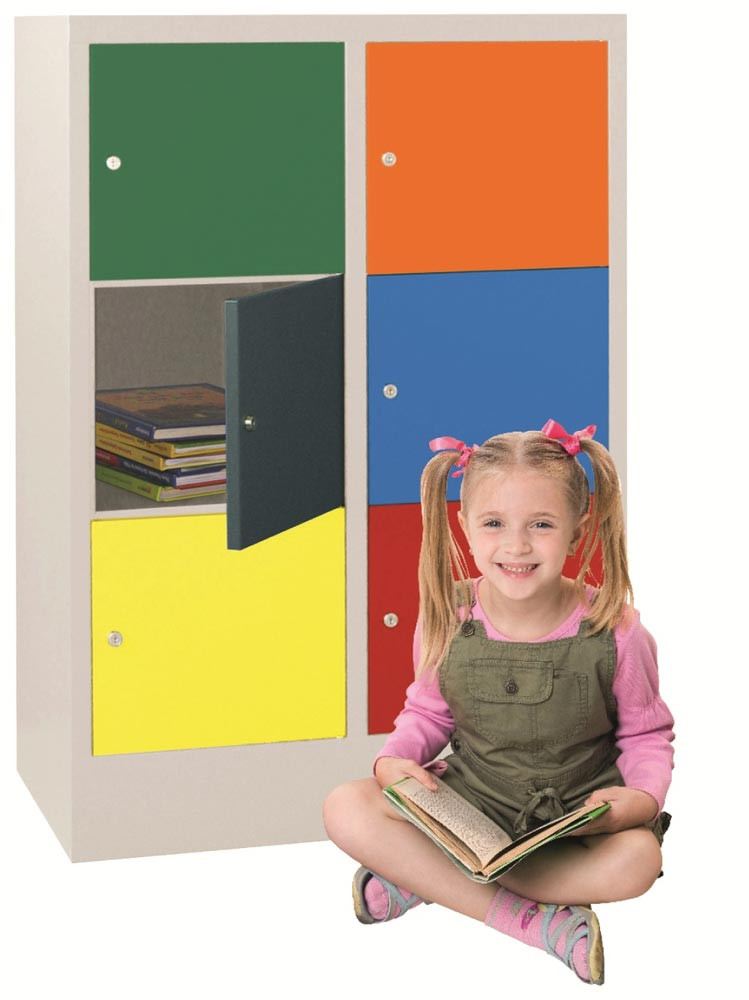 Schließfachschrank Kindergarten/Schule, Sockel, 6 Fächer 400 mm, BxTxH 800x500x1187 mm, Zylinderschloss RAL 7035/5010 EP556945
