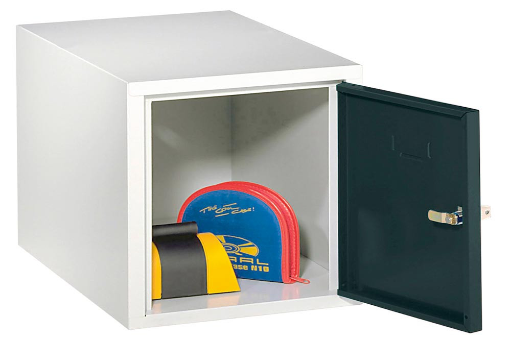 Schließfachwürfel, BxTxH 400x500x380 mm, Tür glatt, Etikettenrahmen, Zylinderschloss, geeignet für Motorradhelme, RAL 7035/9005 EP515907
