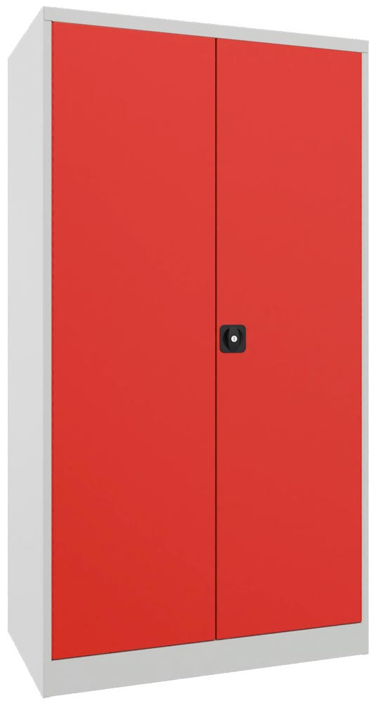 ∙ Besonders stabile, verwindungssteife Stahlblechkonstruktion ∙ Oberfläche pulverbeschichtet ∙ Schränke mit gemeinsam verschließbaren Flügeltüren mit Verstärkungstaschen ∙ Die Türen sind über einen dreiriegeligen Drehgriff mit integriertem Zylinderschloss inkl. 2 Schlüsseln verschließbar ∙ Türöffnung 180 ° ∙ Belastbarkeit je Boden 200 kg, je Schublade 60 kg bei gleichmäßig verteilter Last ∙ Gehäuse-Belastbarkeit 1300 kg ∙ Einrichtungselemente im Raster von