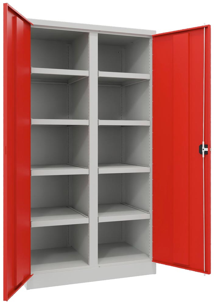 Schwerlastschrank, Vollblechtüren, m. Trennwand, 8 Böden, 200 kg Traglast, BxTxH 1040x630x1950 mm, RAL 5010 EP562132