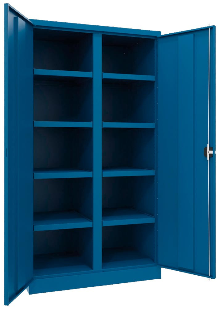Schwerlastschrank, Vollblechtüren, m. Trennwand, 8 Böden, 200 kg Traglast, BxTxH 1040x630x1950 mm, RAL 5010 EP562132