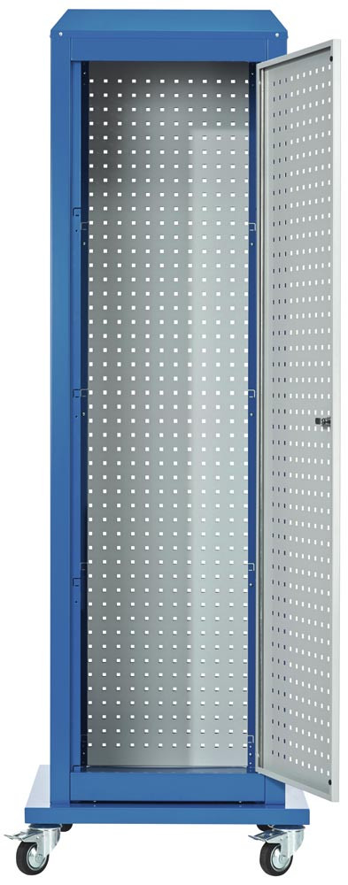 Tool-Tower, BxTxH 700x700x2175 mm, mobil, 5 Lochplatten, 1 Boden, 1 Tür, RAL 5010/7035 EP535989