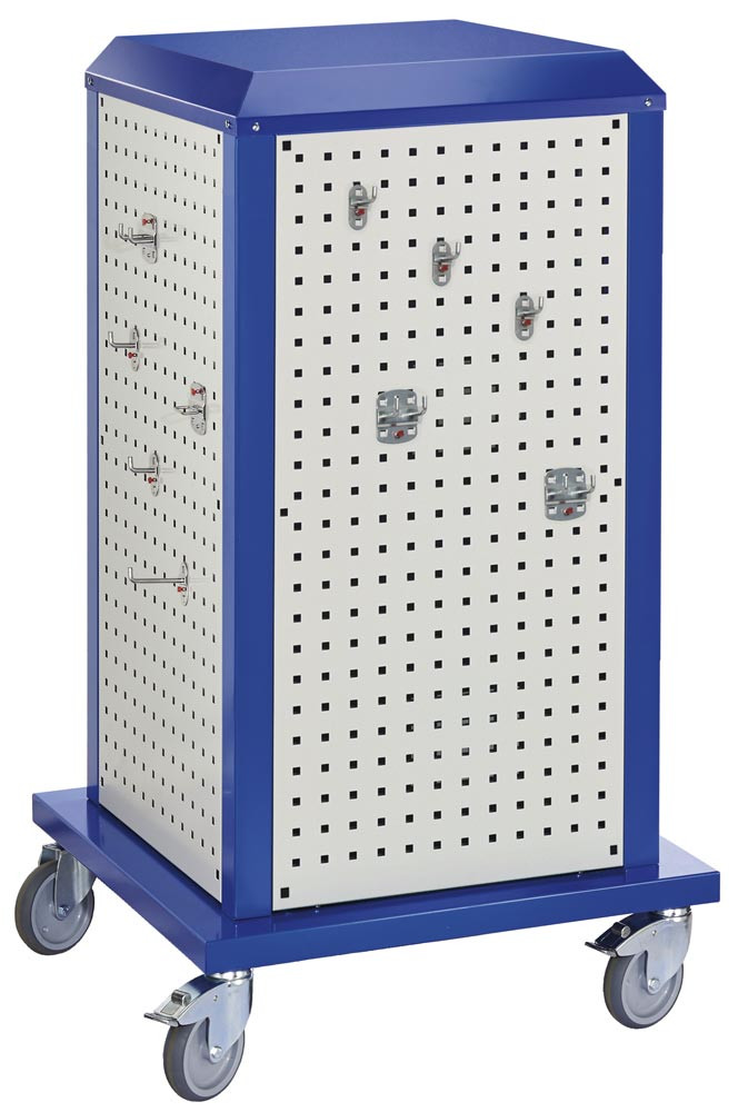 Tool-Tower klein, BxTxH 700x700x1260 mm, mobil, 4 Lochplatten, RAL 5010/7035 EP535998