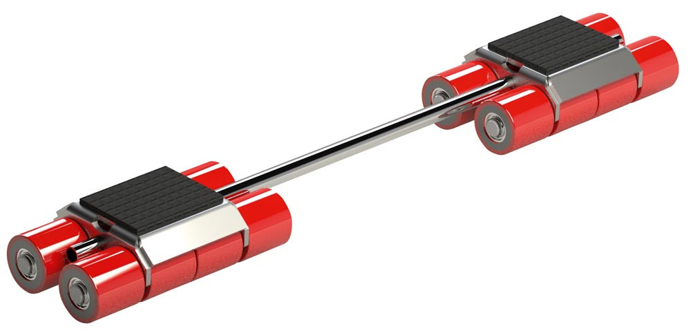 · Für den einfachen und sicheren Transport von schweren Maschinen und anderen Lasten · 2 Kassetten mit verzinkter Verbindungsstange · Auflageflächen mit robustem rutschemmenden Waffelgummi belegt · Niedrige Unterfahrhöhe von 110 mm - gängig mit vielen Transportgeräten · Schwerlastrollen aus hochwertigem Polyurethan in das je 2 Radiallager eingepresst werden