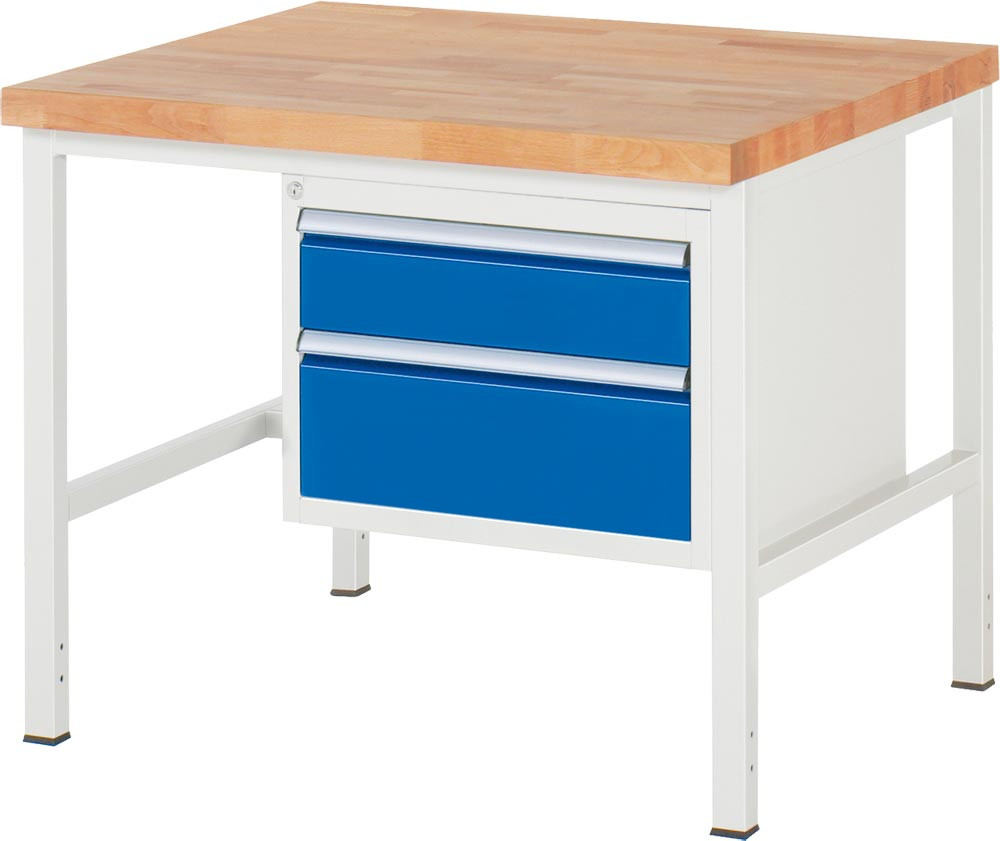 Werkbank, BxTxH 1000x900x840-1040 mm, 2 Schubladen 150/210 mm, Platte Buche 40 mm, RAL 7035/5010