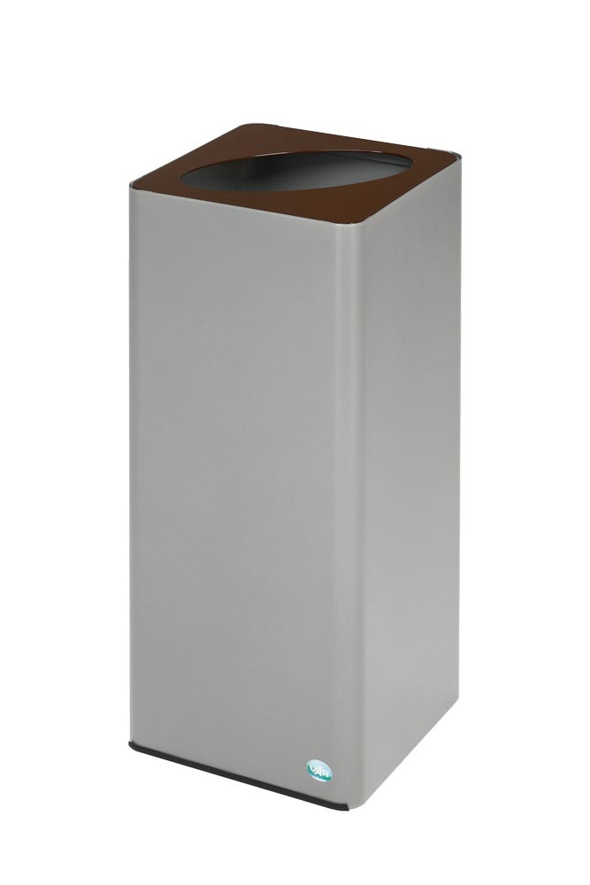 Wertstoffsammler, Stahlblech, Vol. 70 l., Klemmring, BxTxH 320x320x700 mm, Korpus silber, Aufsatz braun, ovaler Einwurf