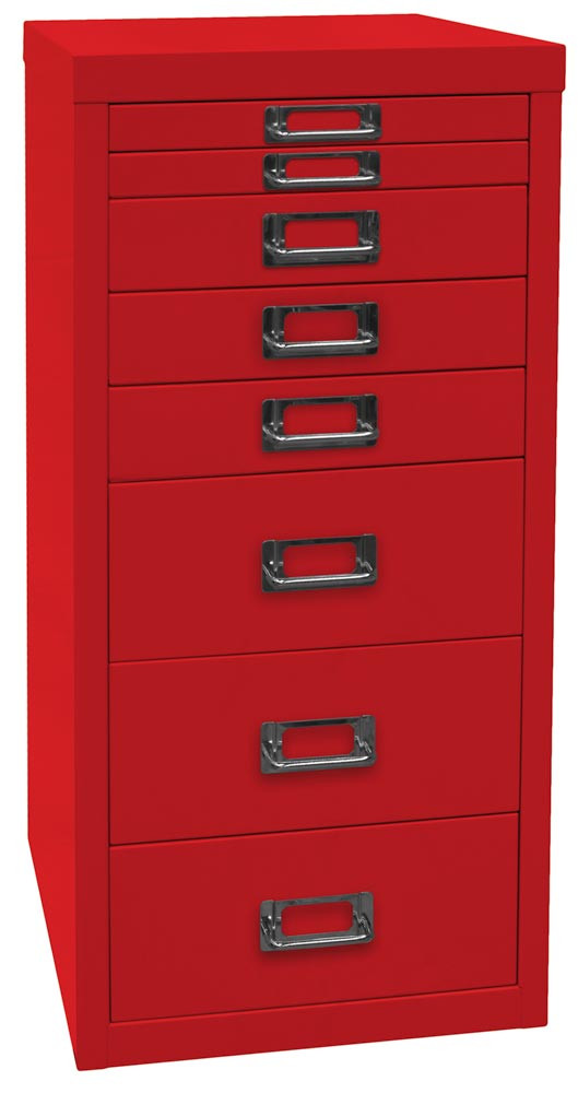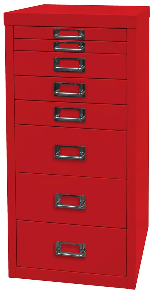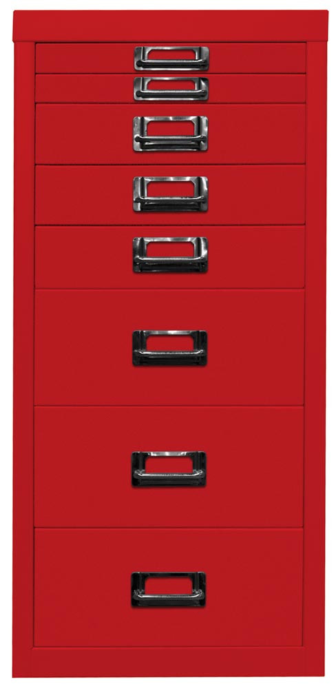 Büro-Schubladenschrank, BxTxH 279x380x590 mm, 8 Schubladen 2x25, 3x51, 3x102 mm, DIN A4, kardinalrot