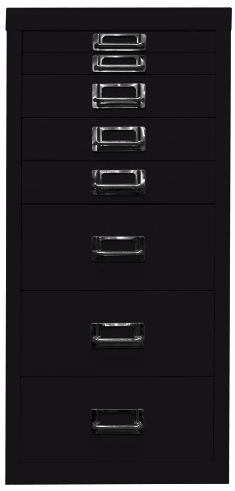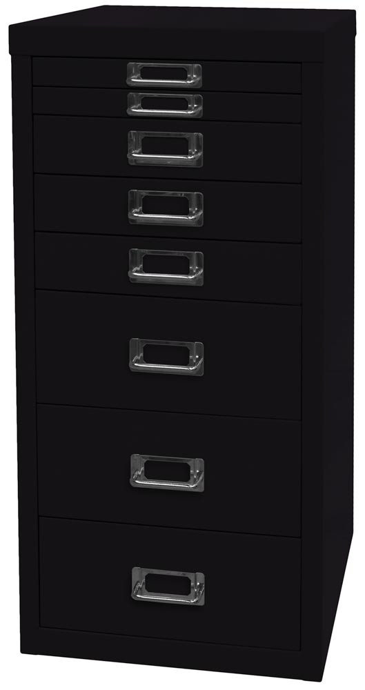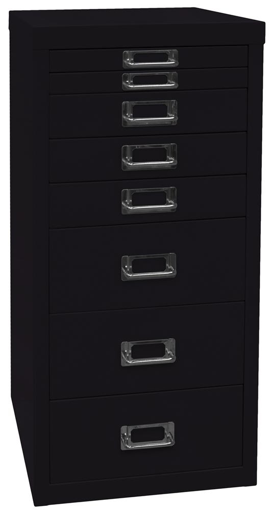 Büro-Schubladenschrank, BxTxH 279x380x590 mm, 8 Schubladen 2x25, 3x51, 3x102 mm, DIN A4, schwarz