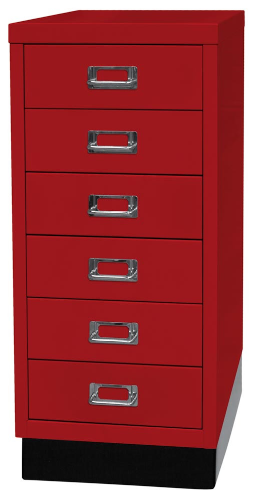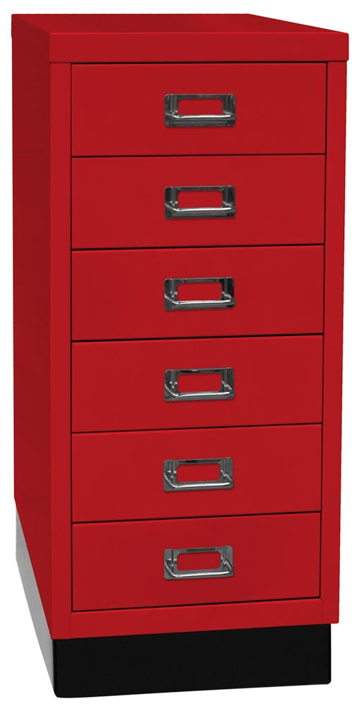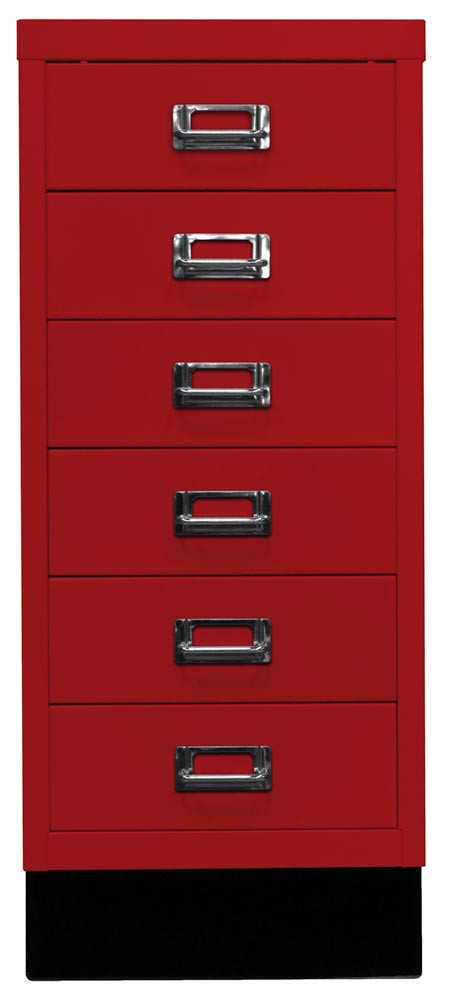 Büro-Schubladenschrank, BxTxH 279x380x670 mm, 6 Schubladen 87 mm, DIN A4, Sockel 80 mm hoch, kardinalrot