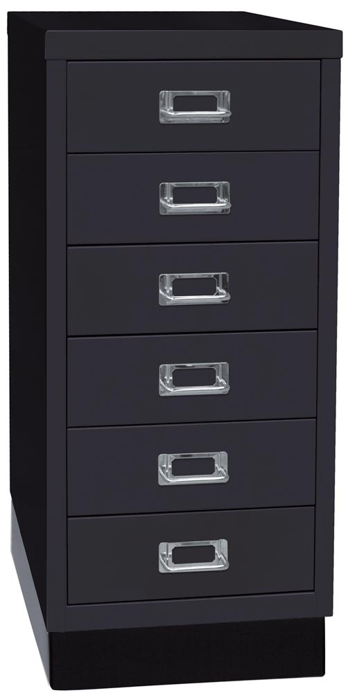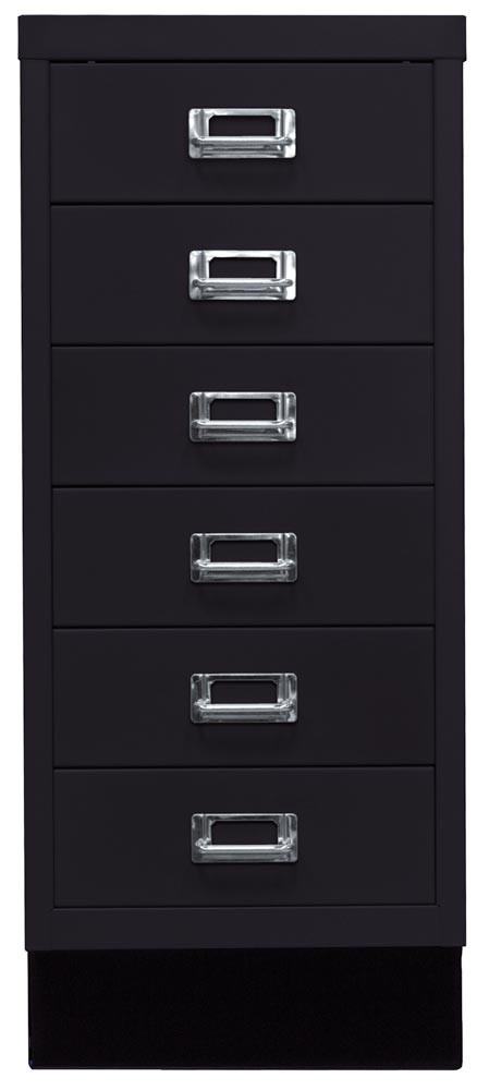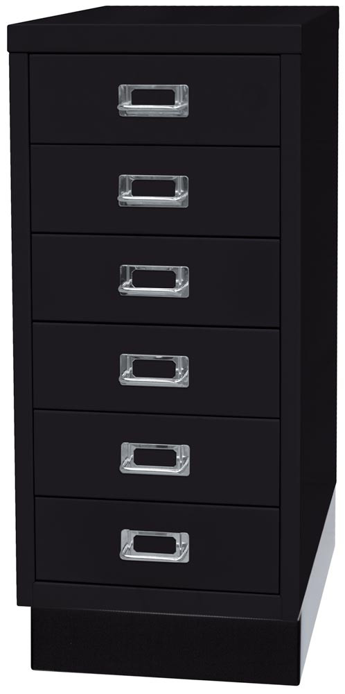 Büro-Schubladenschrank, BxTxH 279x380x670 mm, 6 Schubladen 87 mm, DIN A4, Sockel 80 mm hoch, schwarz