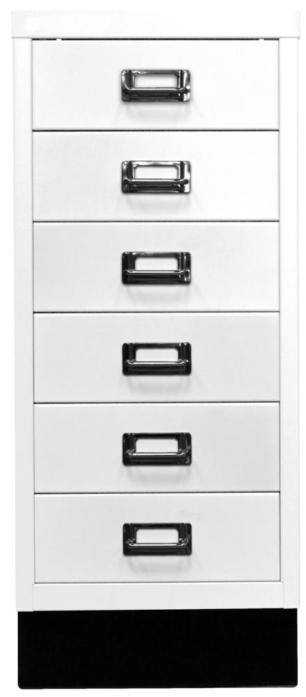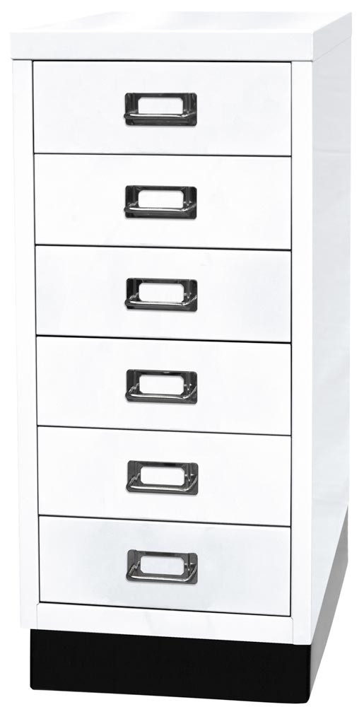 Büro-Schubladenschrank, BxTxH 279x380x670 mm, 6 Schubladen 87 mm, DIN A4, Sockel 80 mm hoch, verkehrsweiß