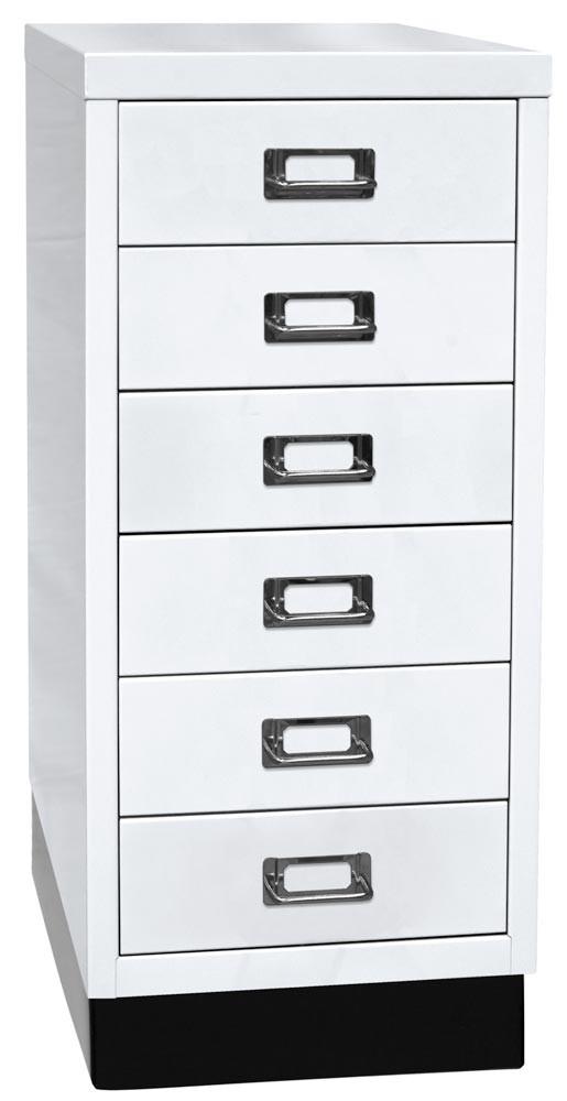 Büro-Schubladenschrank, BxTxH 279x380x670 mm, 6 Schubladen 87 mm, DIN A4, Sockel 80 mm hoch, verkehrsweiß EP533939