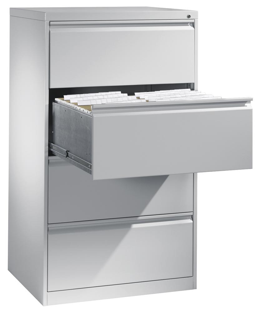 Hängeregistraturschrank, BxTxH 433x590x1357 mm, einbahnig, 4 Schubladen, Griffleiste, RAL 7035 lichtgrau EP517908