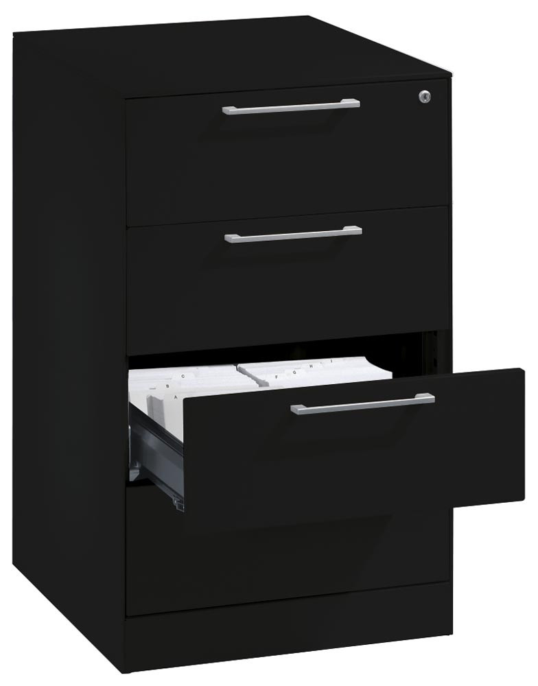 Karteischrank, BxTxH 440x600x698 mm, DIN A6, zweibahnig, 4 Schubladen, Bügelgriff, RAL 7021 schwarzgrau