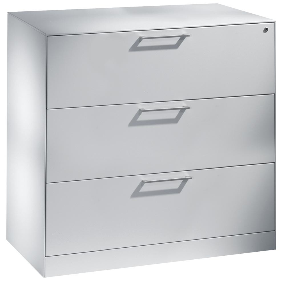∙ Robuste und langlebige Stahlkonstruktion mit hochwertiger Einbrennlackierung ∙ Schubladen auf 100 % ausziehbaren Kugelrollen-Teleskopführungen ∙ Schubladenfronten mit matt-verchromtem Bügelgriff ∙ Zentralverschluss mit Auszugsperre ∙ Austauschbarer Wechselkern, inkl. 2 Schlüsseln ∙ Inkl. selbstklebenden Kunststoff-Etikettenrahmen