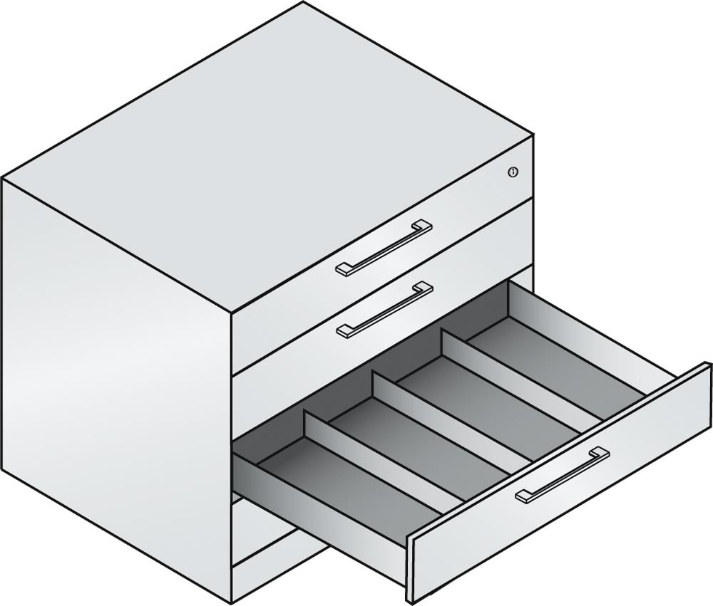∙ Robuste und langlebige Stahlkonstruktion mit hochwertiger Einbrennlackierung ∙ Schubladen auf 100 % ausziehbaren Kugelrollen-Teleskopführungen ∙ Schubladenfronten mit matt-verchromtem Bügelgriff ∙ Zentralverschluss mit Auszugsperre ∙ Austauschbarer Wechselkern, inkl. 2 Schlüsseln ∙ Inkl. selbstklebenden Kunststoff-Etikettenrahmen
