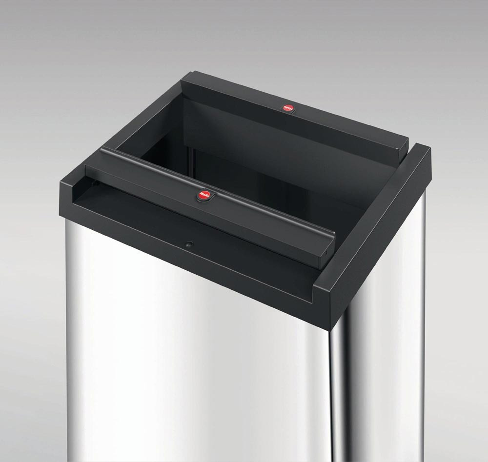 Großraum-Abfallbox, Volumen 35 l, BxTxH 340x260x500 mm, Gehäuse Edelstahl, Kunststoff-Schwingdeckel schwarz EP552605
