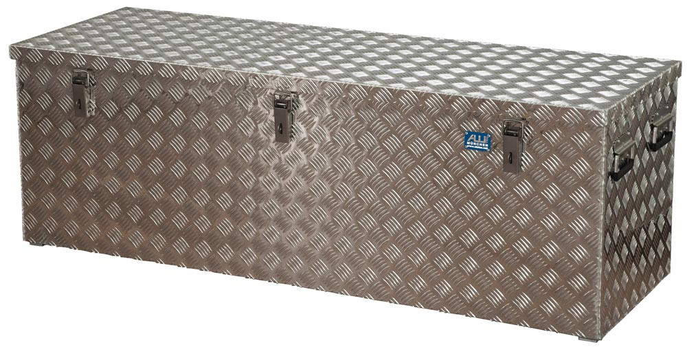 ∙ Aus legiertem 3 mm Aluminium-Riffelblech mit rundum geschweißten Nähten ∙ Ideal für die Lagerung und den Transport von sensiblen und hochwertigen Gütern ∙ Selbsteinklappende Sicherheits-Tragegriffe und massive Edelstahl-Exzenterverschlüssen mit Ösen für Vorhängeschösser ∙ Staub- und spritzwassergeschützt ∙ Sockel mit Innengewinde M 10 zur Rädersatz-Montage