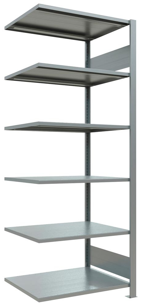 Archiv-Steckregal, Anbaufeld, RAL 7035 lichtgrau, 6 Fachböden, ohne Mittelanschlag, Fachlast 150 kg, BxTxH 1000x600x2000 mm
