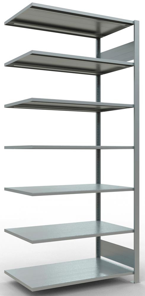 Archiv-Steckregal, Anbaufeld, verzinkt, 7 Fachböden, ohne Mittelanschlag, Fachlast 150 kg, BxTxH 1000x600x2300 mm