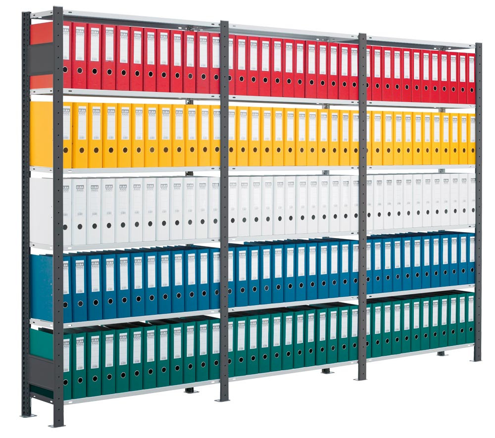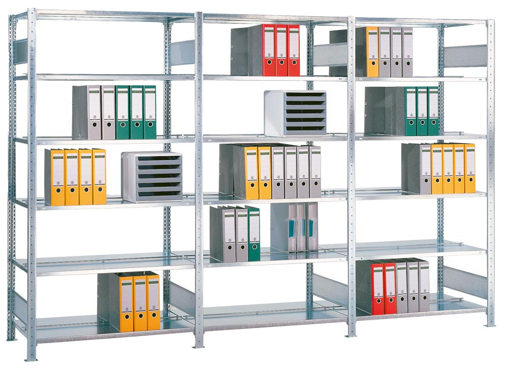 ∙ Büroraum ist teuer und muss deshalb optimal genutzt werden ∙ Dieses Steckregalsystem schafft reichlich Platz und Durchblick, ohne Raum zu verschwenden ∙ Höchst stabiles Regalsystem mit spielend leichter Montage ∙ Durch die Kombination von Grund- und Anbaufeld beliebig erweiterbar (Grundfeld mit zwei, Anbaufeld mit einem Rahmenständer)