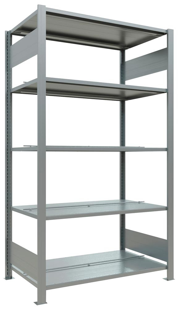 Archiv-Steckregal, Grundfeld, verzinkt, 5 Fachböden, mit Mittelanschlag, Fachlast 150 kg, BxTxH 1000x600x1800 mm