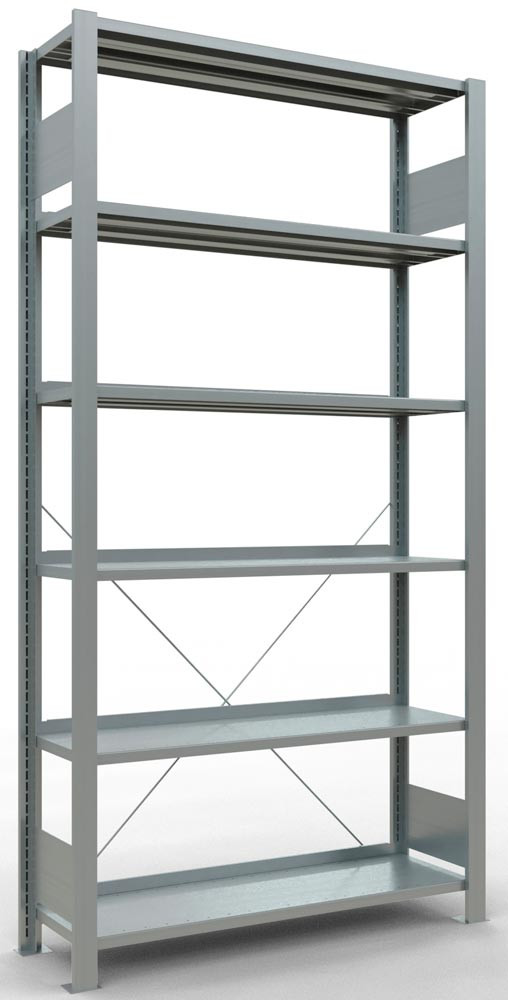 Archiv-Steckregal, Grundfeld, verzinkt, 6 Fachböden, mit Anschlagleiste, Fachlast 85 kg, BxTxH 1000x300x2000 mm