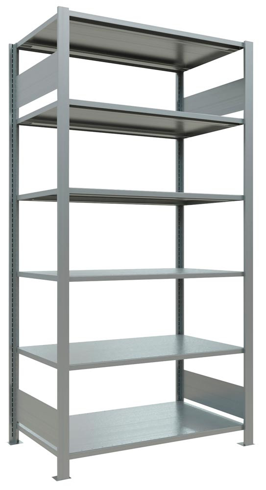 Archiv-Steckregal, Grundfeld, verzinkt, 6 Fachböden, ohne Mittelanschlag, Fachlast 150 kg, BxTxH 1000x600x2000 mm