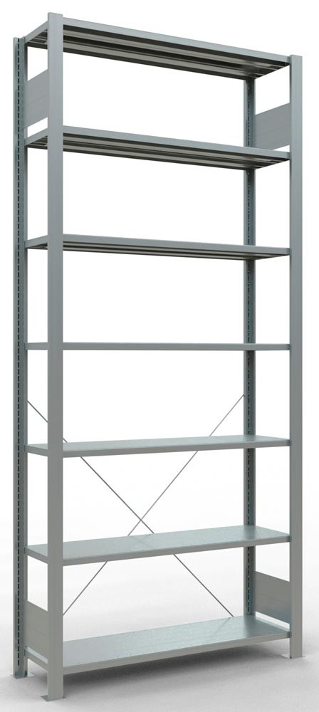 Archiv-Steckregal, Grundfeld, verzinkt, 7 Fachböden, ohne Anschlagleiste, Fachlast 85 kg, BxTxH 1000x300x2300 mm