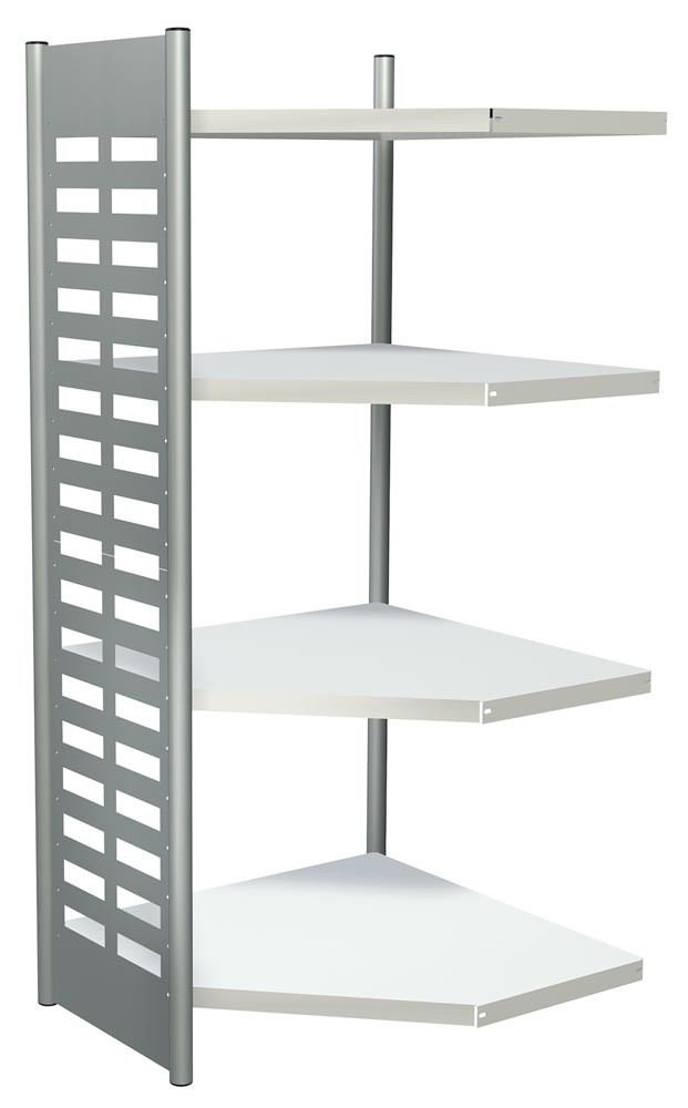 Büroregal, Eckfeld, BxTxH 400x400x1800 mm, 4 Böden, alusilber/lichtgrau, OHNE Abschlussrahmen