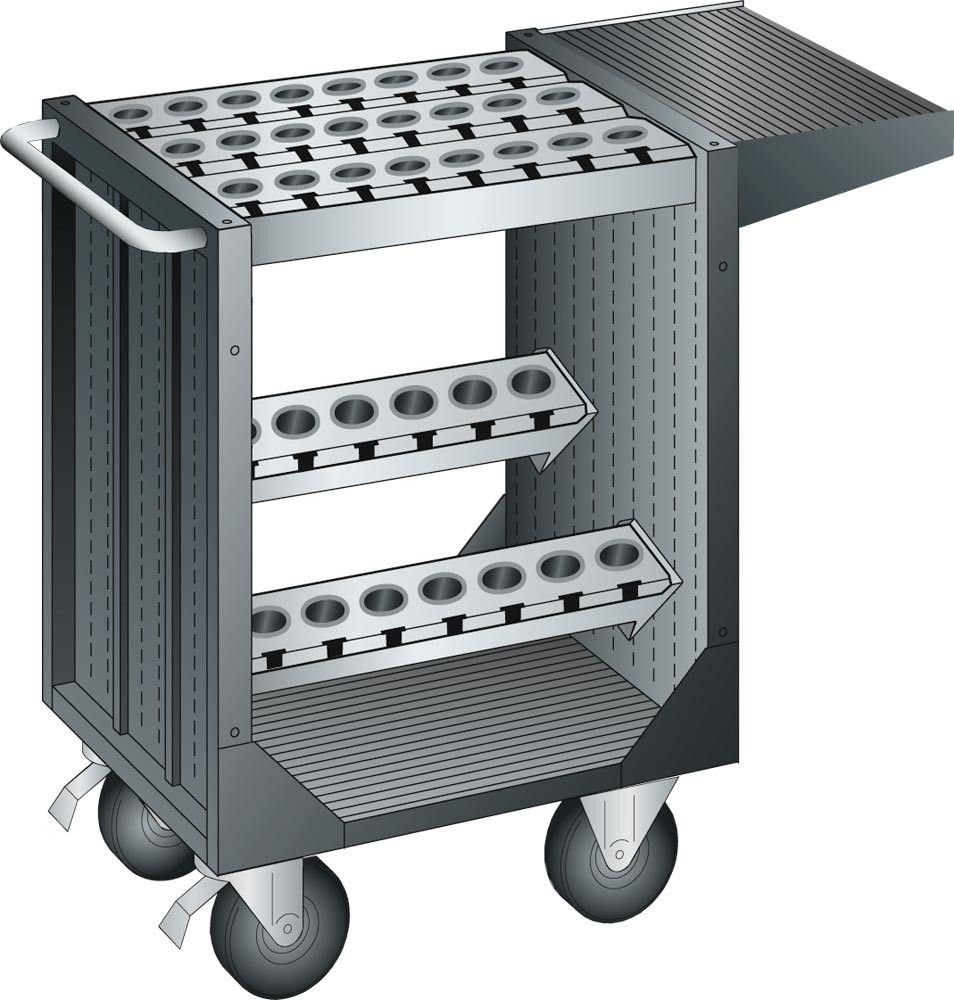 CNC-Transportwagen, BxTxH 1077x514x932 mm, 30 Halter HSK 63 A+C+E/80 B+D+F, RAL 7035 EP531536