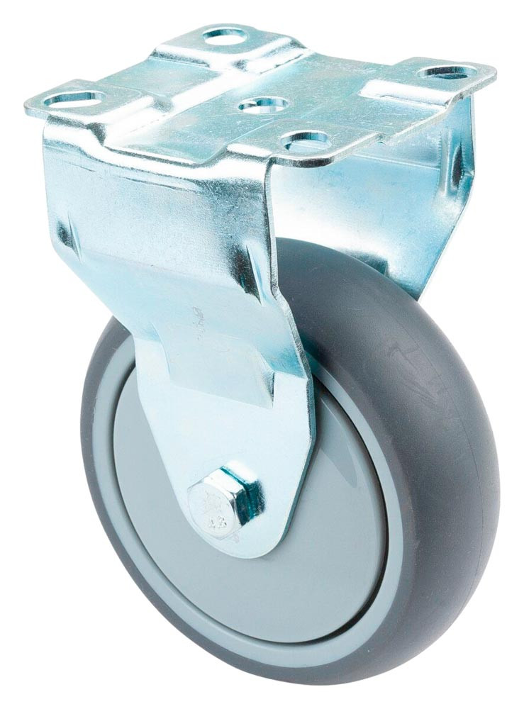 ESD-Apparaterolle, Bockrolle, Gummi thermoplastisch grau, Durchm. 100 mm, Traglast 100 kg, Kugellager, Anschraubplatte