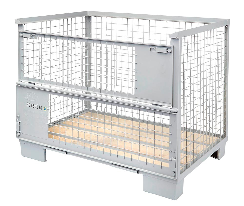 Gitterbox-Palette nach DIN 15155 und UIC-Merkblatt 435-3, hohe Bauform, 1 Längswand mit 2 Klappen, RAL 7030 steingrau, LxBxH 1240x835x970 mm EP514917