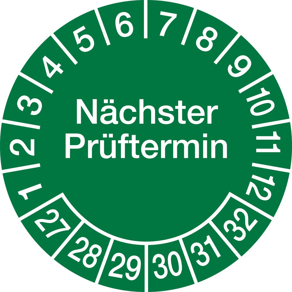 Hinweisschild, nächster Prüftermin 2027, PVC-Folie, grün, Durchm. 30 mm, VE 10 Stück, Mindestabnahme 10 VE