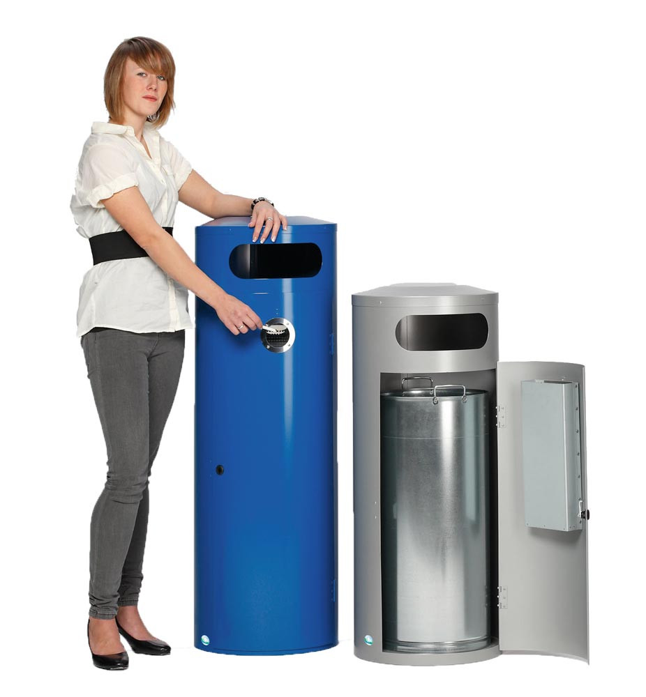 Kombi-Ascher, Volumen 90 Liter, Durchmesser 420 mm, Höhe 1245 mm, Einflügeltür, Farbe RAL 7021