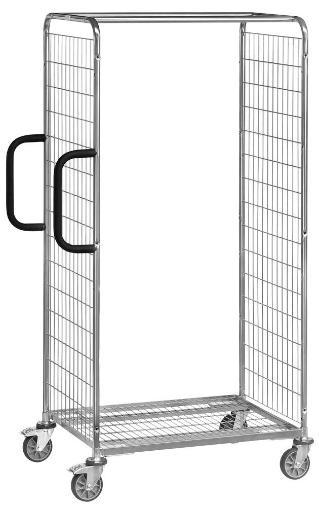 Kommissionierwagen, 2 Gitterwände, ohne Böden, Ladefläche LxB 850x610 mm, Außenmaße LxBxH 1091x690x1825 mm, Traglast 300 kg, verzinkt