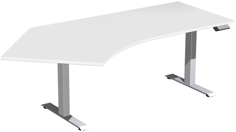 PC-Schreibtisch, elektr. höhenverstellbar, BxTxH 1800x800/1000x630-1280 mm, links 425 mm, Melamin-Platte 25 mm, weiß/silber EP561481